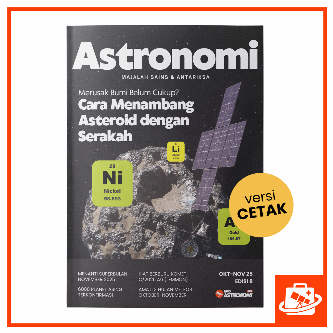Edisi ke-8 Majalah Astronomi kali ini menghadirkan tema besar yang memancing refleksi umat manusia: “Merusak Bumi Belum Cukup? Cara Menambang Asteroid dengan Serakah”. Sebuah bahasan mendalam tentang masa depan eksplorasi ruang angkasa dan etika manusia dalam menambang sumber daya di luar Bumi. Bolehkah kita menambang asteroid?